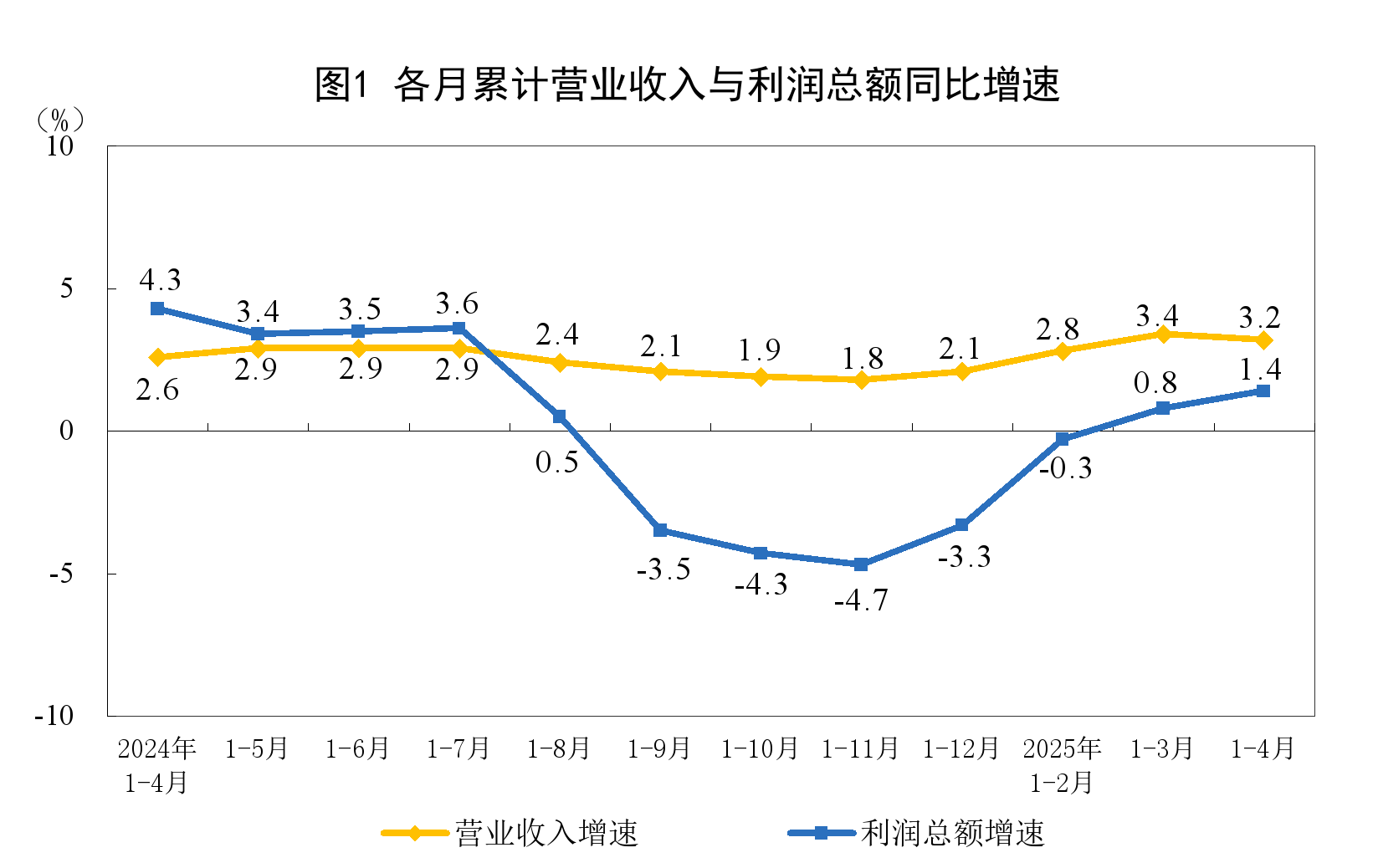 14月份,采矿业实现利润总额2875。0亿元,同比下降26。8%;制制业实现利润总额15549。3亿元,增加8。6%;电力、热力、燃气及水出产和供应业实现利润总额2745。8亿元,增加4。4%。